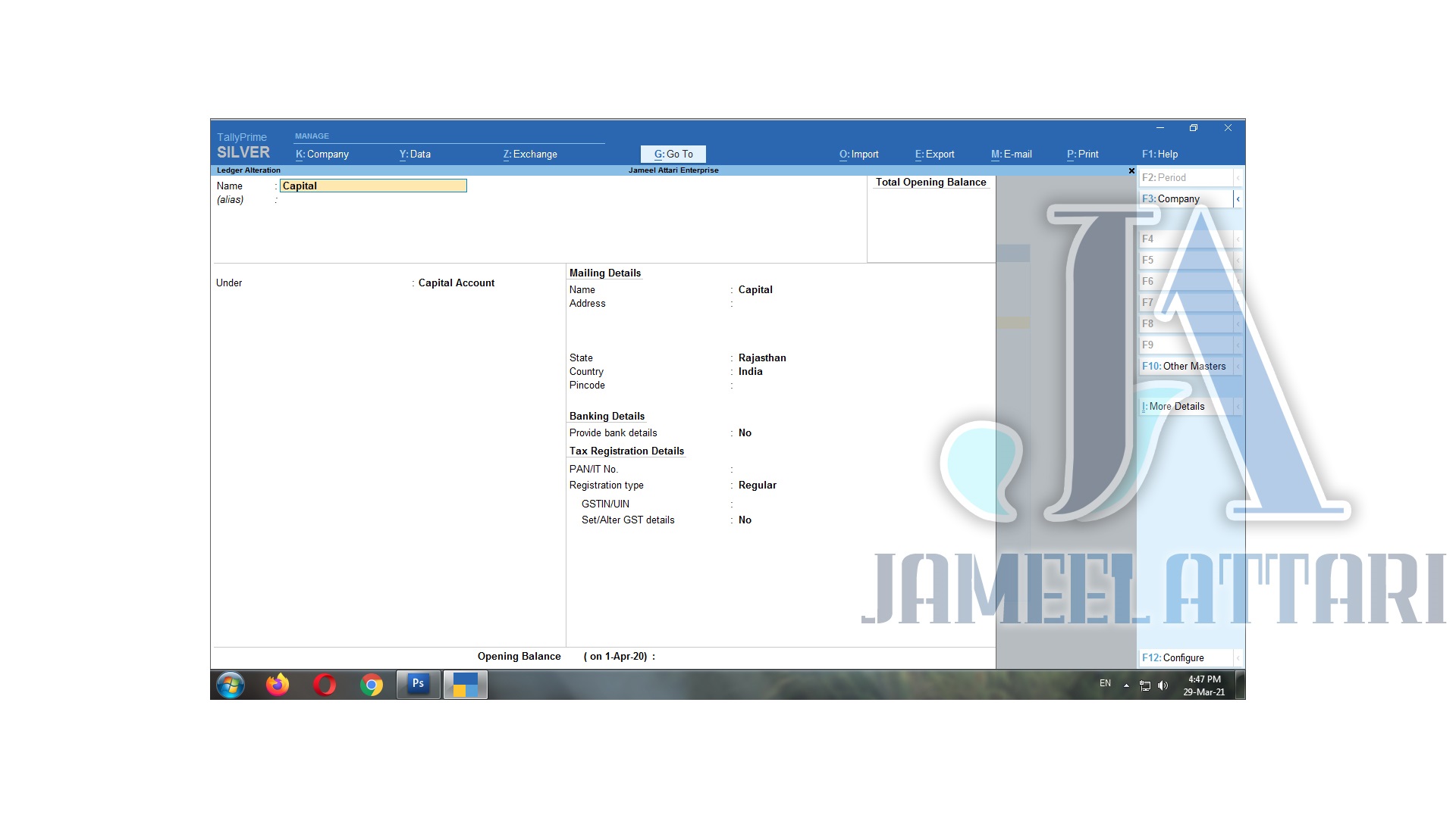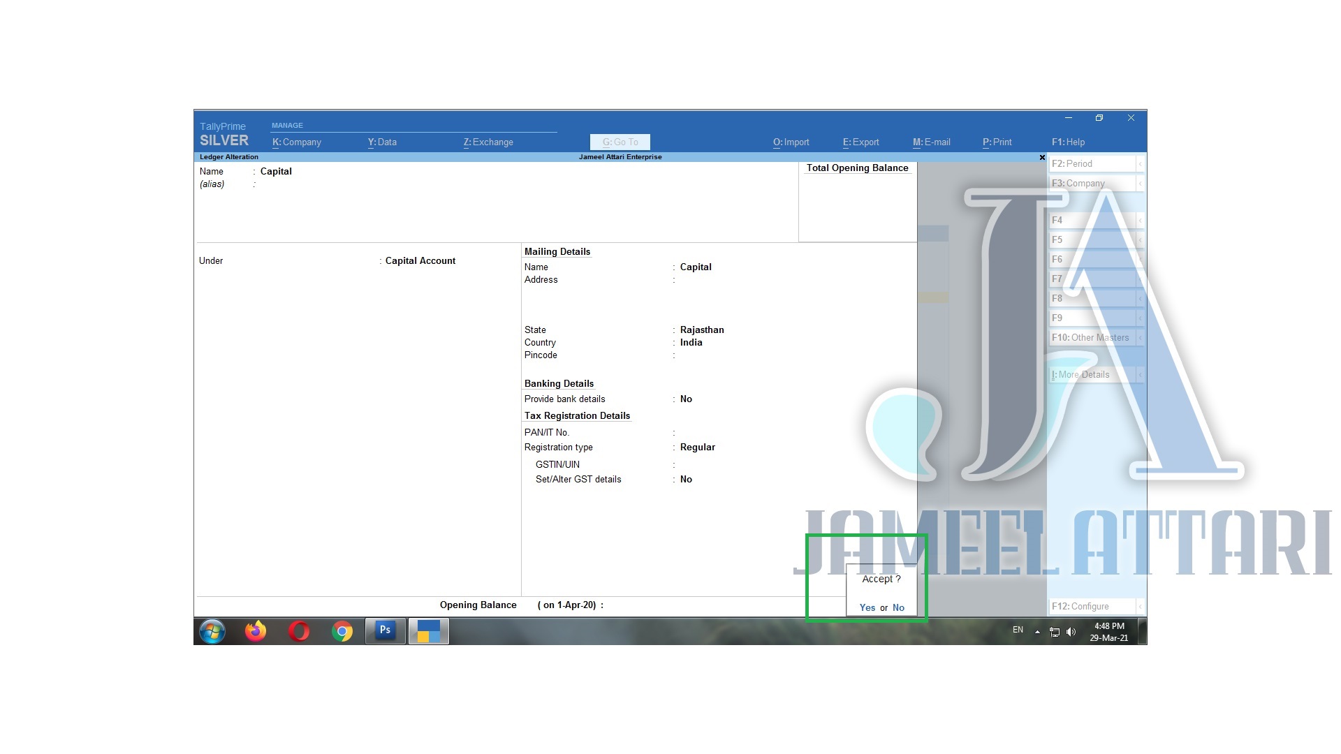दोस्तों, इस ब्लाॅग में हम लेजर में सुधार करना Alter Ledger in Tally Prime सीखेंगे।