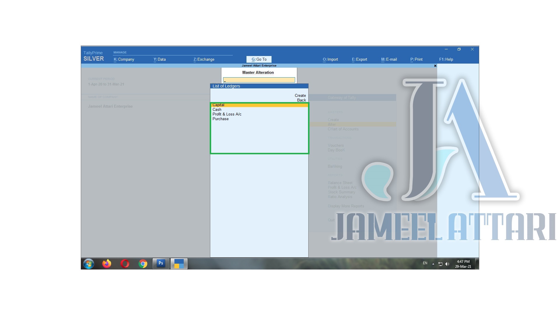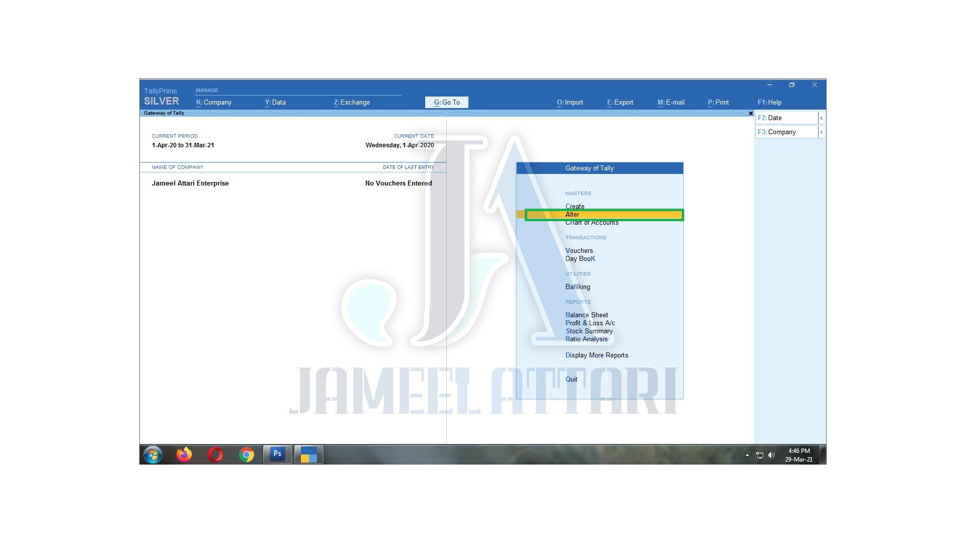 - Gateway of Tally मे हमें Alter सलेक्ट करके एण्टर करना है करना है या उस पर क्लिक करना है।